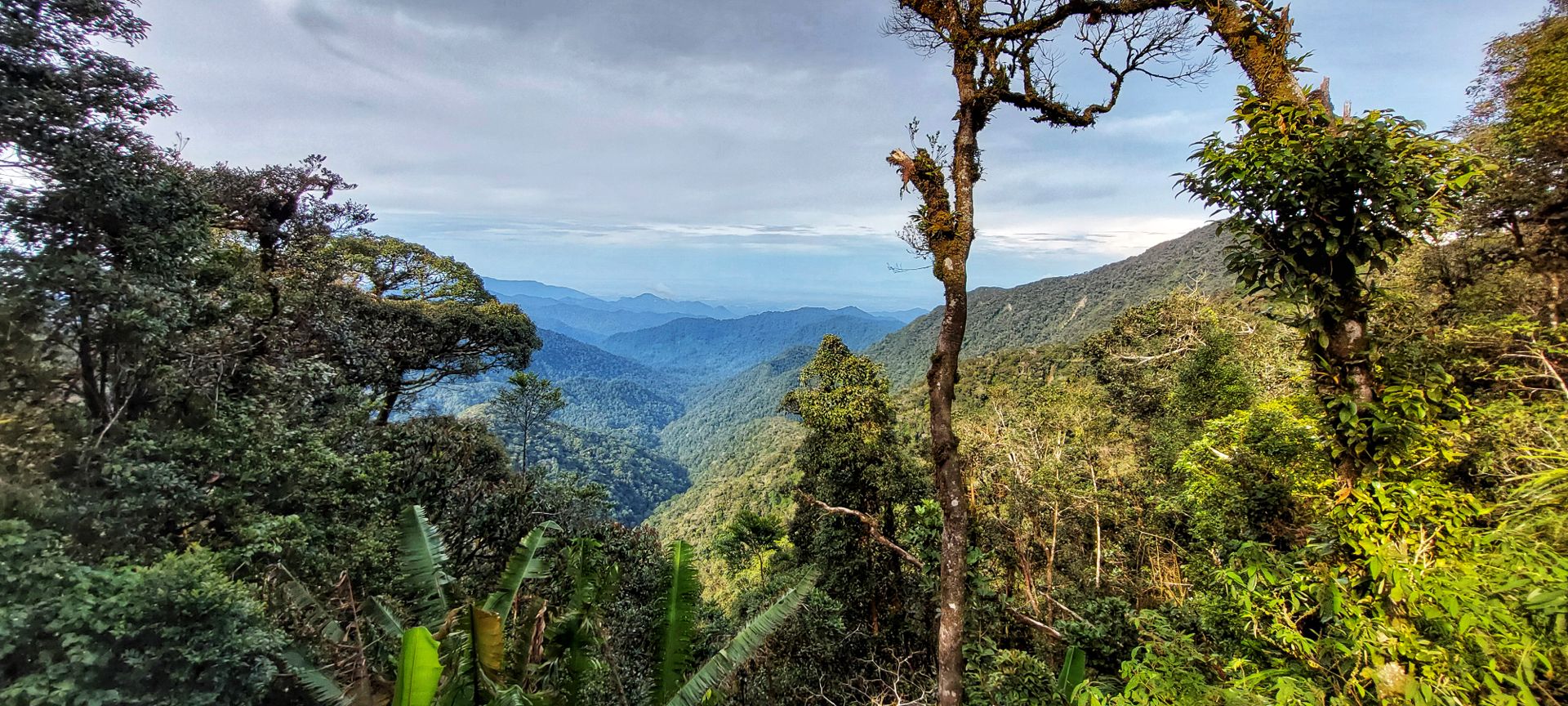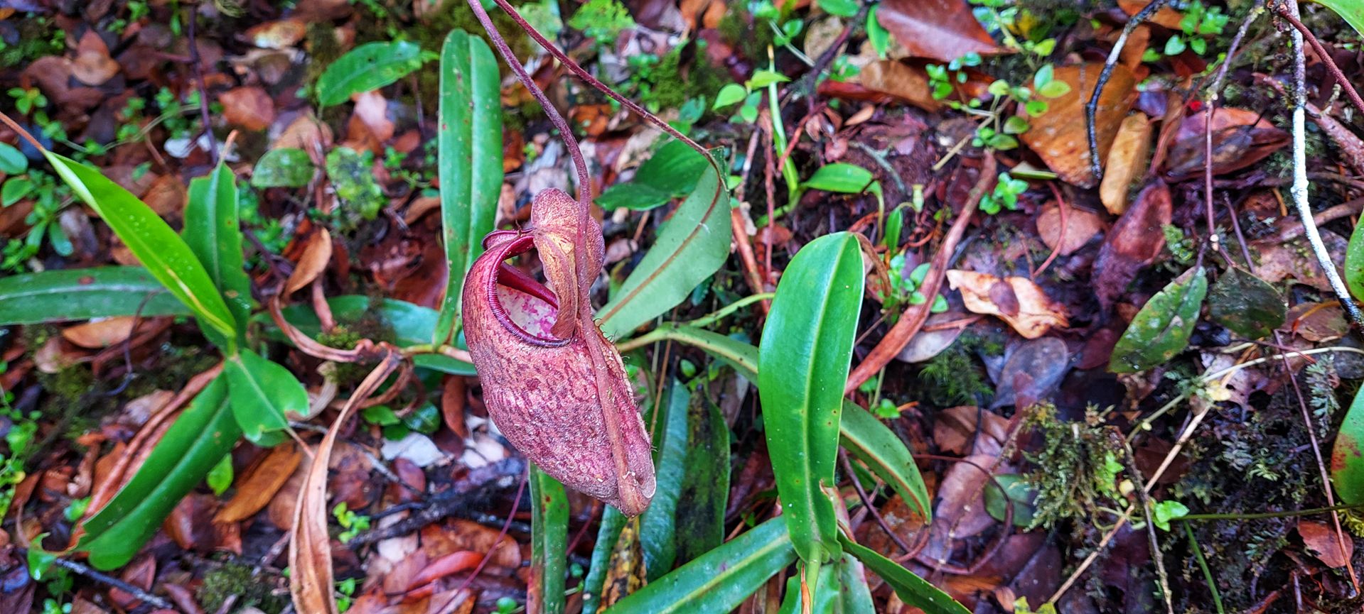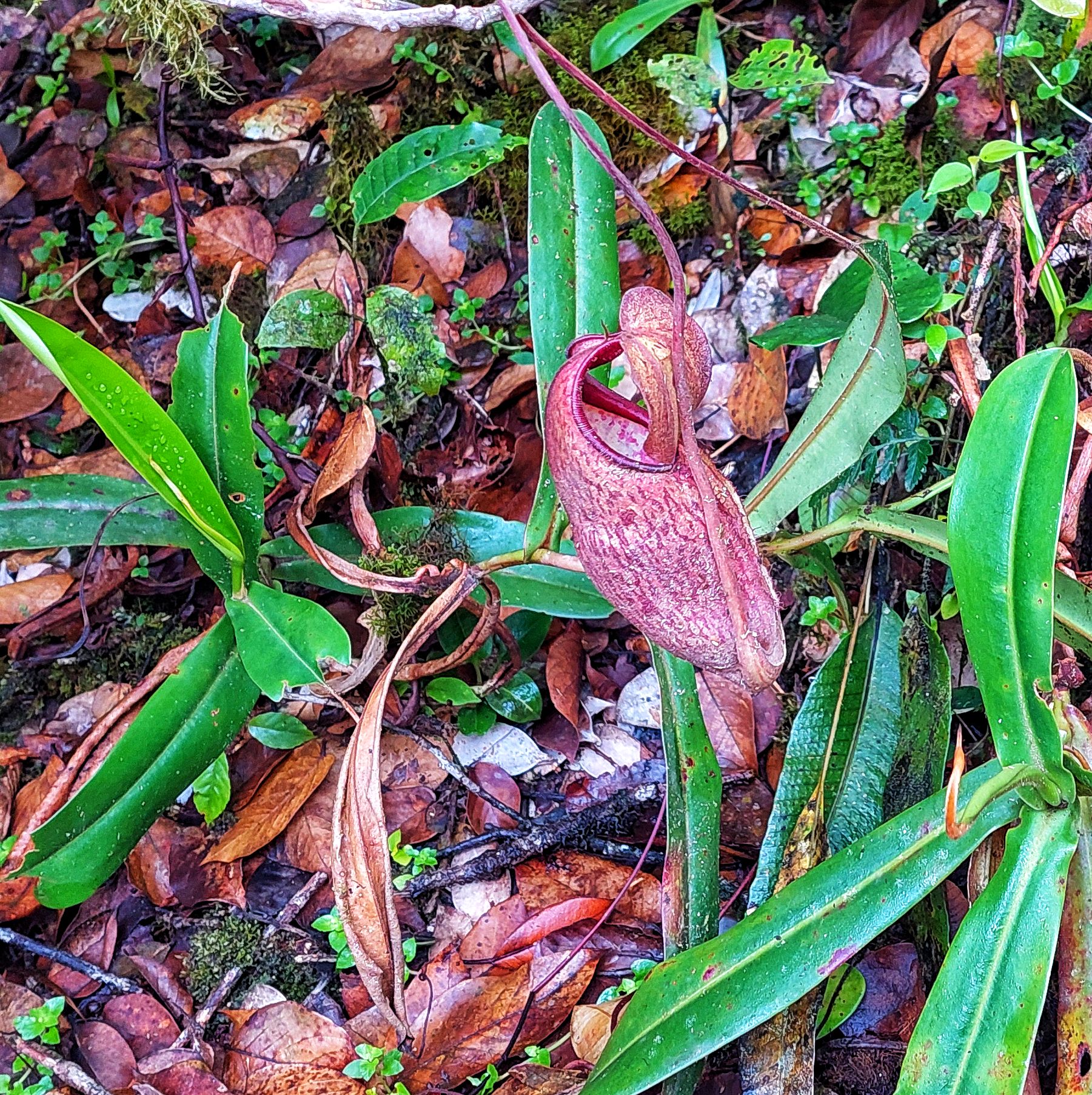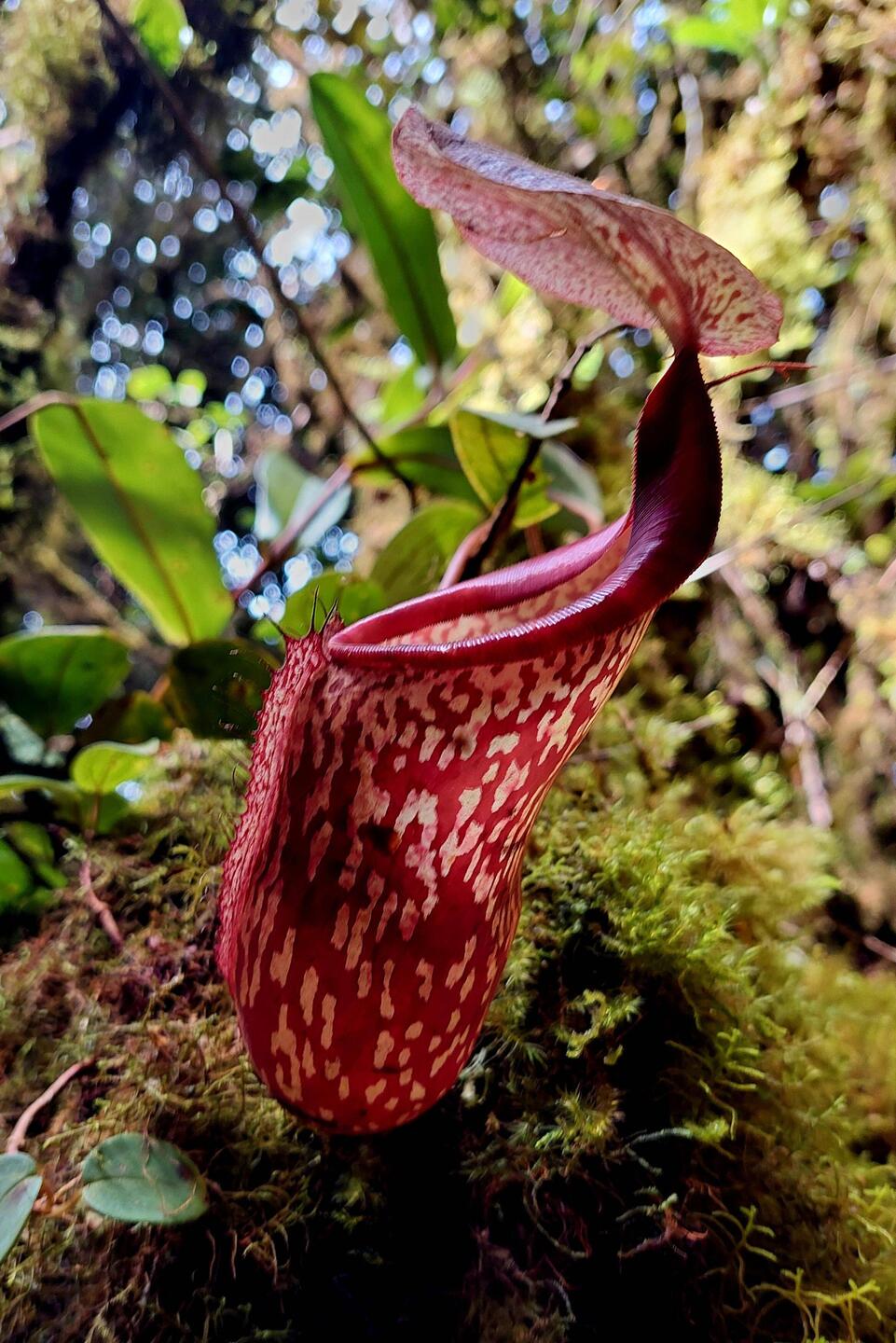 Oben angekommen gab es erst mal eine tolle Aussicht runter Richtung Ipoh. Dann war eine Gebühr von 10MYR fällig, um einen Weg in den Wald laufen zu dürfen. Der Weg war recht hübsch und man konnte die wundervollen Pflanzen sehen und Vögel vor allem hören, selten sehen. Meine App war sich sehr sicher, dass da ein Goldkehl Bartvogel, eine Spechtart zu hören war. Gesehen haben wir auch Kannenpflanzen / Monkey-Cups. Kannenpflanzen sind tropische, fleischfressende Pflanzen. Irgendwo wurde man dann auf einen sumpfigen, glitschigen, eigenartigen Rundtrampelpfad den Hang hoch geschickt. Da hier so viele Menschen waren, musste man nach 2 Schritten wieder 1-10 Minuten warten. Es war  fordernd, sich nicht zu nerven. Etwas Besonderes zu sehen gab es eigentlich nicht. Hätten wir das gewusst, hätten wir diesen Trampelpfad ausgelassen.