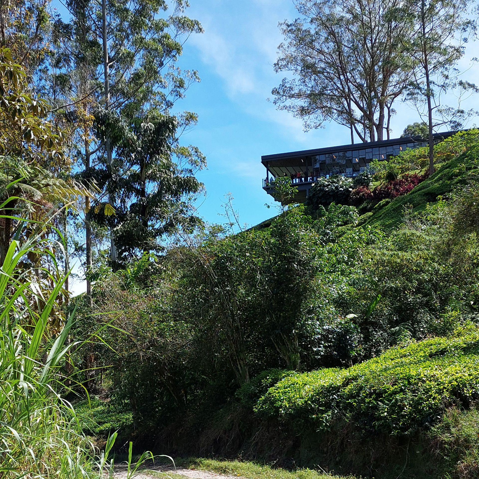 Bei der Teeplantage angekommen waren wieder sehr viele Menschen. Wer in dem wirklich schönen Teehaus was trinken wollte, musste in langer Schlange anstehen. Es gab noch einen Verkaufsladen und eine kleine Ausstellung mit Film. Der Film war interessant. Durch die vielen Menschen vor dem Raum und auch in dem Raum war aber wenig zu verstehen. Die Bereiche drumrum waren nicht zu betreten. Einzig wenn man eine Treppe Richtung grossen Parkplatz runter ging kam ein Weg durch die Teefelder. Dieser Weg war für uns das schönste des Ausflugs. Wir sahen einige Vögel, wundervolle Vegetation und es war ruhig. Leider mussten wir dann aber wieder zurück.