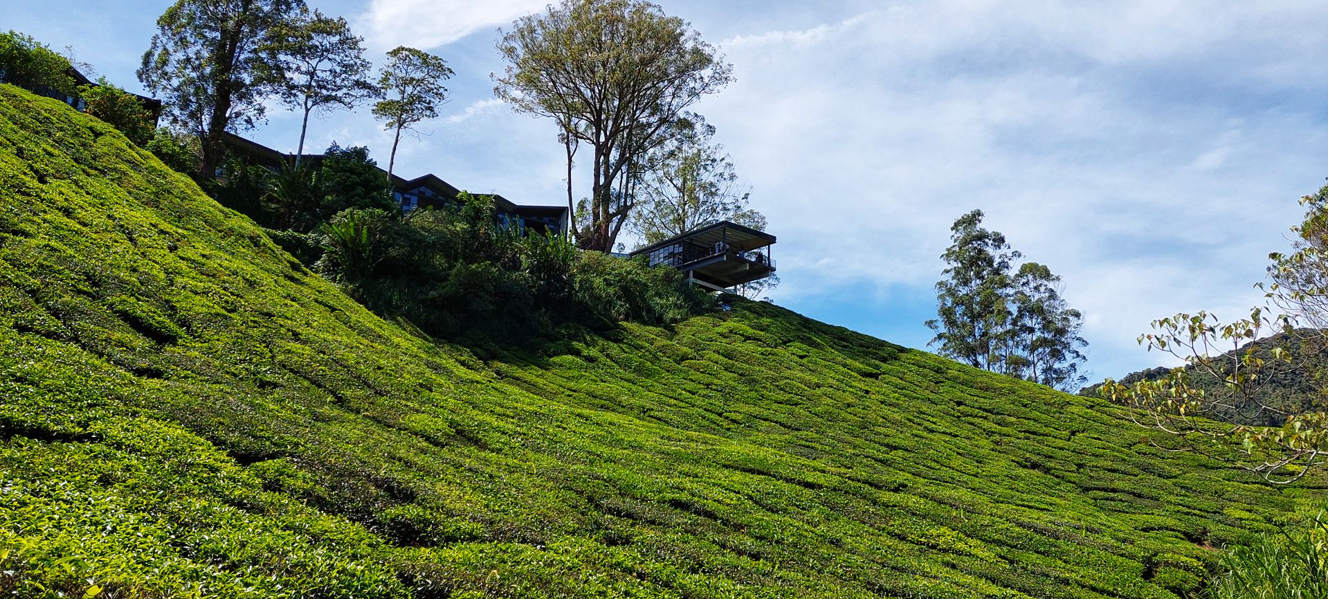 Wieder im Jeep ging es durch die Berge zu den Boh Teeplantagen. Die Fahrt wäre sicher interessant gewesen, aber man hatte im Jeep kaum die Möglichkeit aus dem Fenster zu sehen. Die Fenster waren etwa auf Bauchnabel- bis Brusthöhe. Irgendwann fuhren wir an einem Arbeiter:innendorf vorbei und erfuhren, dass die Arbeiter:inner vorwiegend aus Bangladesch und Nepal kommen.