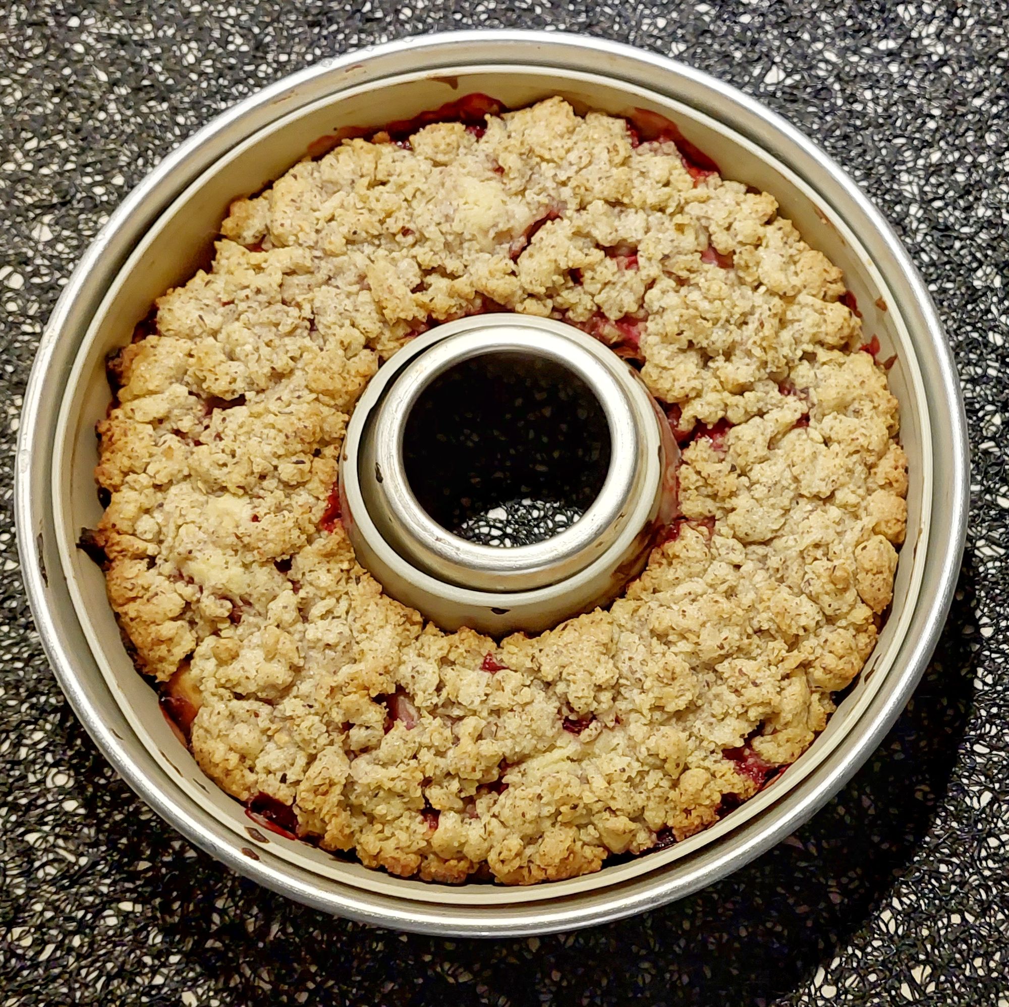 8 Zutaten für den Streusel mischen, bis es eine krümelige Masse ist.
