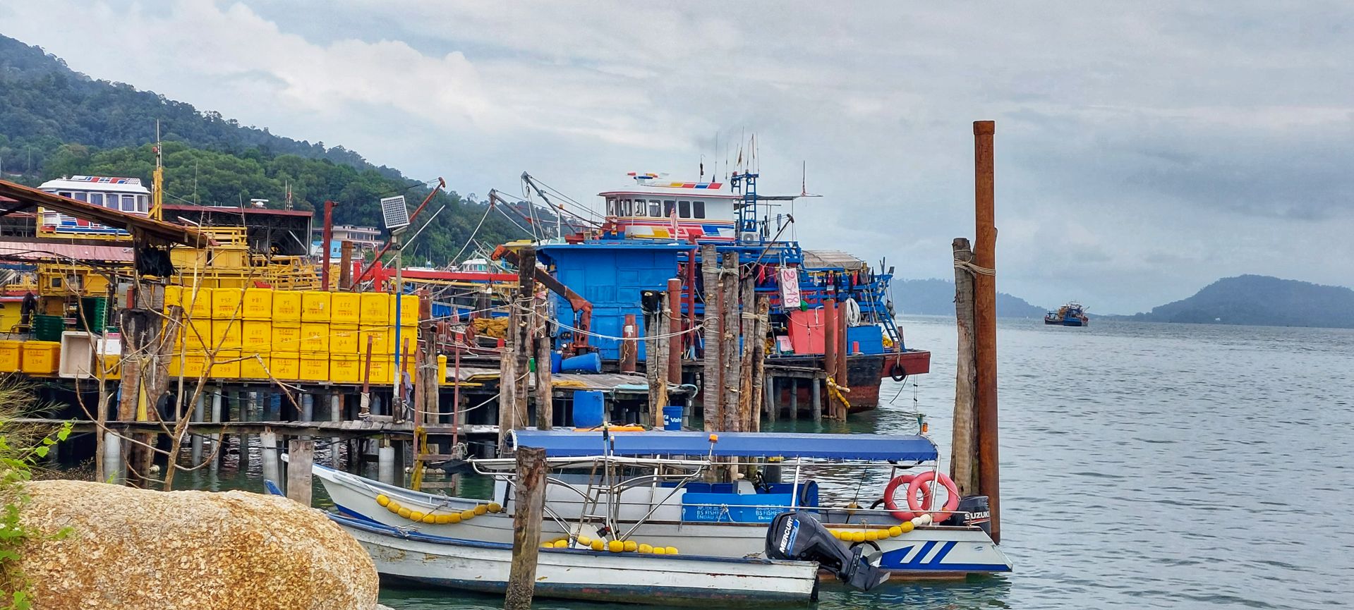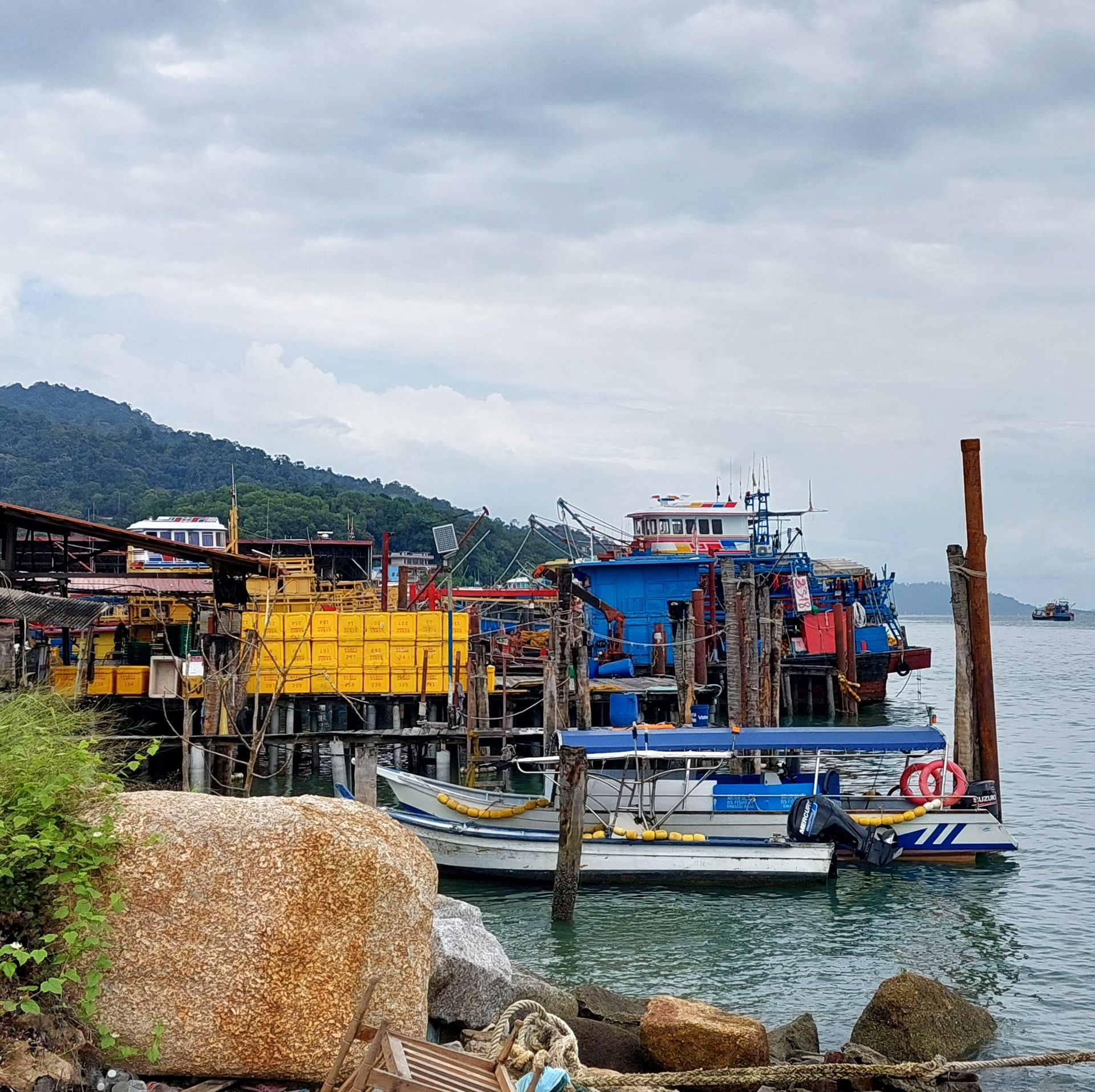 Die Insel im Westen von Malaysia schien uns noch ein Geheimtipp. Unsere Recherche gab nämlich nur sehr wenig zur Insel her. Und so sind wir von Ipoh nach Lumut, von dort mit der Fähre und dann weiter mit dem Taxi auf die andere Seite der Insel zu unserer Unterkunft.