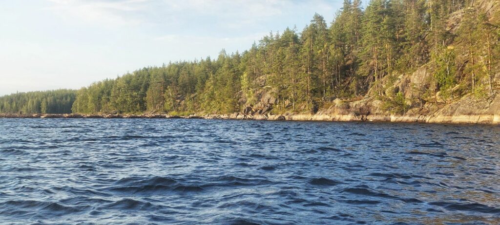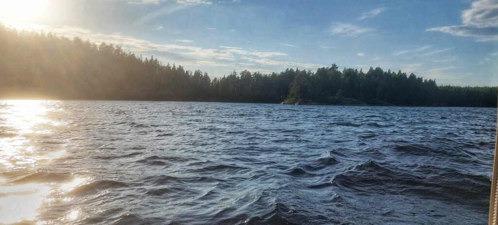 Der See ist mit durchschnittlich 17m tiefe nicht besonders tief und wasserreich, lädt aber bestens zum Schwimmen, Boot fahren und allen Aktivitäten ein, die Wasser oder Eis so besonders macht. Im Winter kann man Eisbaden, – fischen und auf dem Eis gleiten mit Schneemobil, Schlitten oder Schneescooter. Dürfte ich mir was wünschen, wären es weniger laute Bootsmotoren, die etwas das Rauschen der Blätter im Wind überdecken. Da aber trotz Hochsaison wirklich wenig los ist, bleibt das nur ein leiser Wunsch. Der Wunsch habe ich besonders auch für die Tiere im und am See. Der Saimaa gilt als besonders fischreich, wobei besonders der Lachs den Menschen interessiert.