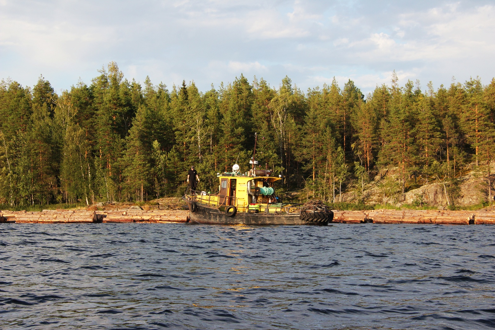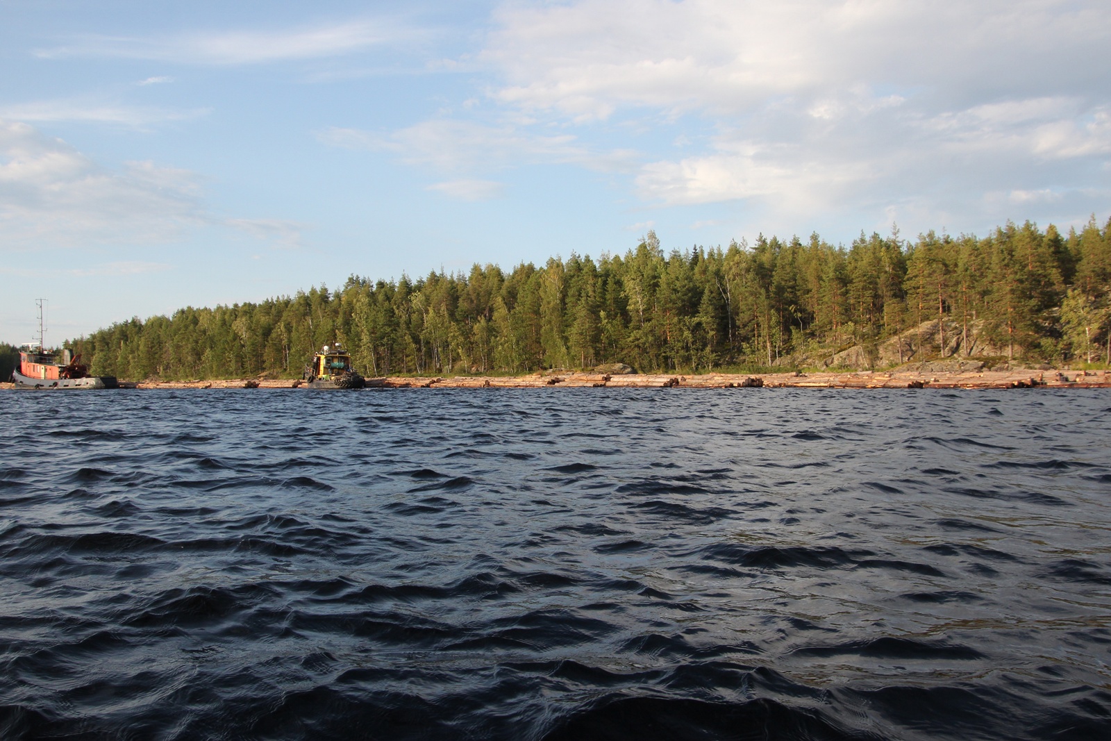 Zudem konnten wir sehr interessantes über die riesigen Holzflosse erfahren, mit denen die Stämme zu den Sägereien gebracht werden. Die aneinander geketteten Holzstämme werden mit 3 Booten über den See transportiert und das Gespann ist etwa 1 km lang. Ein wirklich faszinierendes Spektakel, was zu den späten Abendstunden oder früh morgens stattfindet. Wir haben die letzten Vorbereitungen dazu bestaunen können.