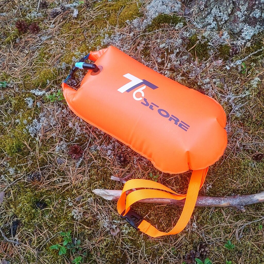 Es ist eine aufblasbare Schwimmboje. Bis jetzt ist sie absolut dicht, was das Hauptkriterium ist. Ich lege auch immer ein Blatt Haushaltspapier rein, um das zu überprüfen. Zur Sicherheit packe ich besonders empfindliche Sachen aber nochmals in einen Beutel. Gebranntes Kind halt. Zum Schwimmen, wenn man den Gurt um die Hüfte hat ist es bedeutend angenehme, als ein Rucksack auf dem Rücken. ZUdem klappt es auch gut, sich mal für eine gewisse Zeit daran festzuhalten, wenn man z.B. mit einem Fluginsekt kämpft. Als Schwimmhilfe ist das Teil aber sicher nicht gedacht.